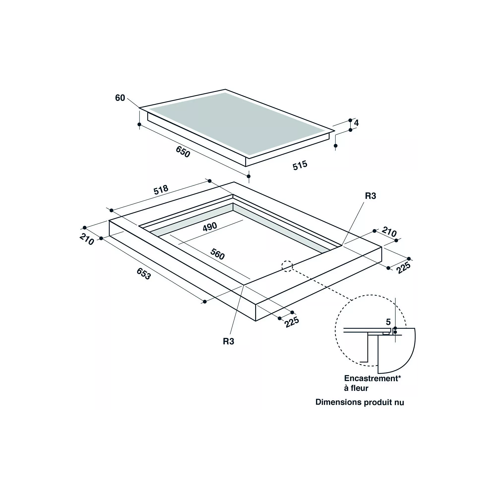 • Encastrement (L x P) : env. 56 × 49 cm