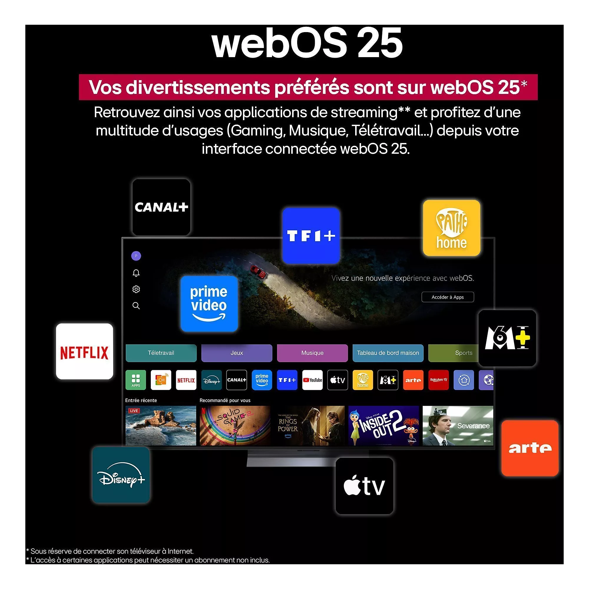 - Smart TV WebOS : simplicité d’usage et accès à tous les contenus.