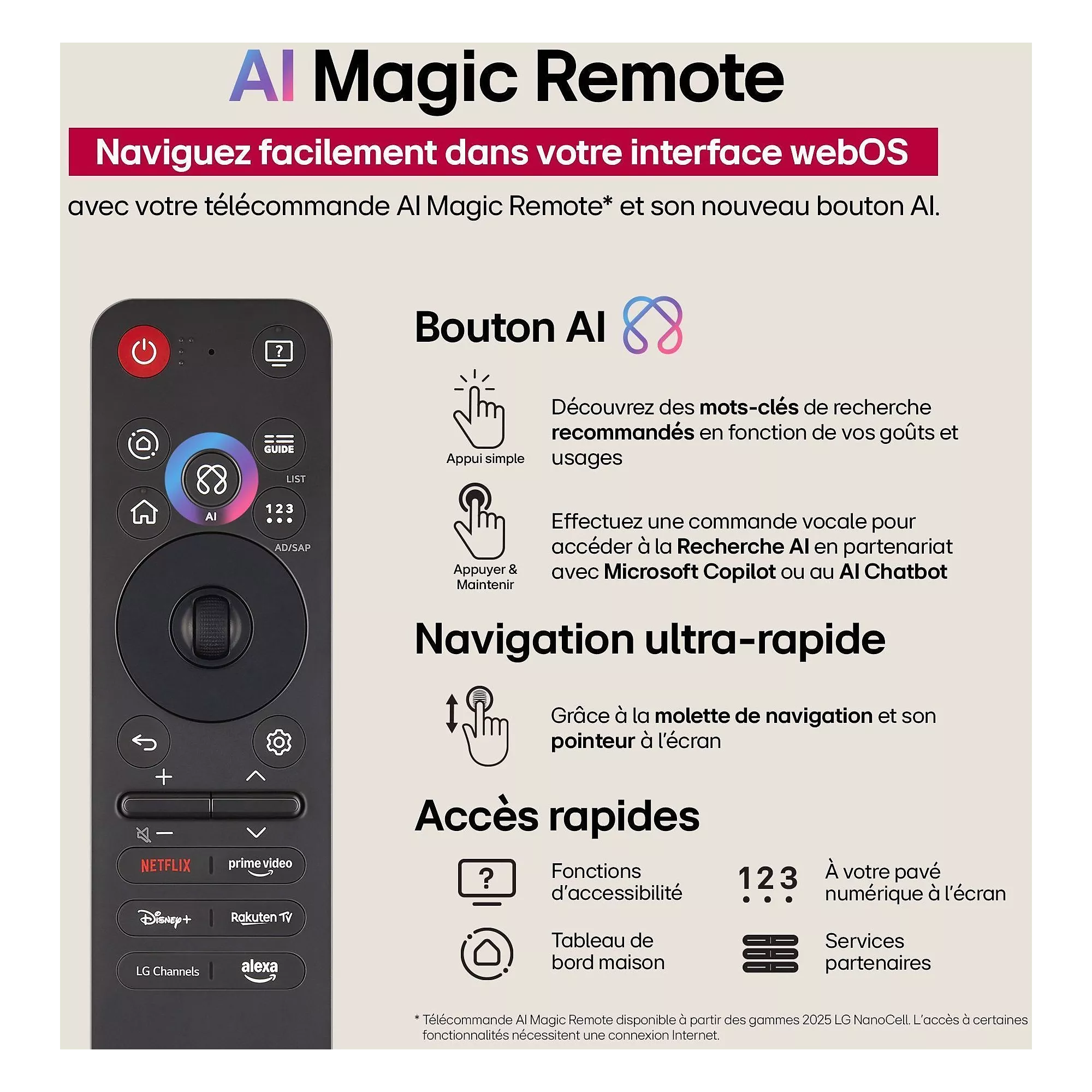 - Système Smart TV WebOS de LG, interface intuitive et riche.